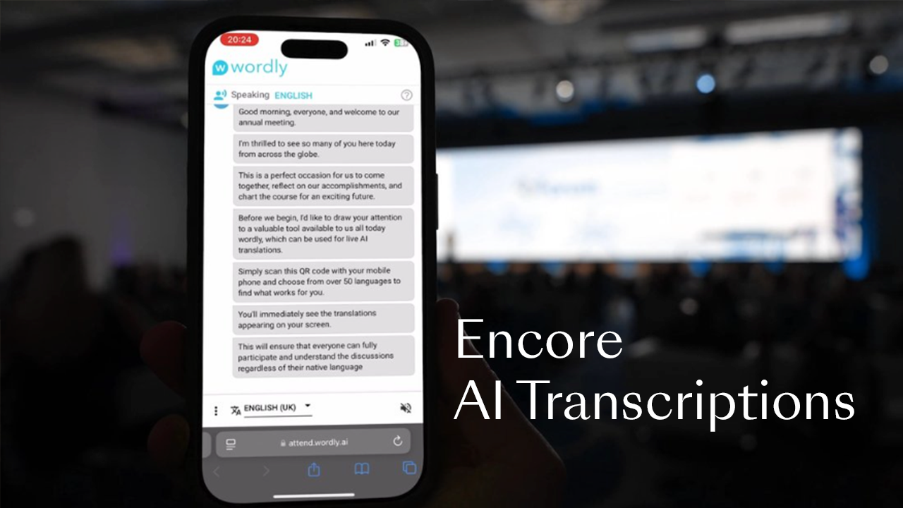Within this tight timeframe, AI-powered captioning and summary services are a new and easy way to make events and meetings of any size or format more engaging and accessible. Encore AI Translation and AI Transcription solutions display subtitles on personal devices or screens as presenters and panelists talk, enhancing comprehension and boosting attendee focus.